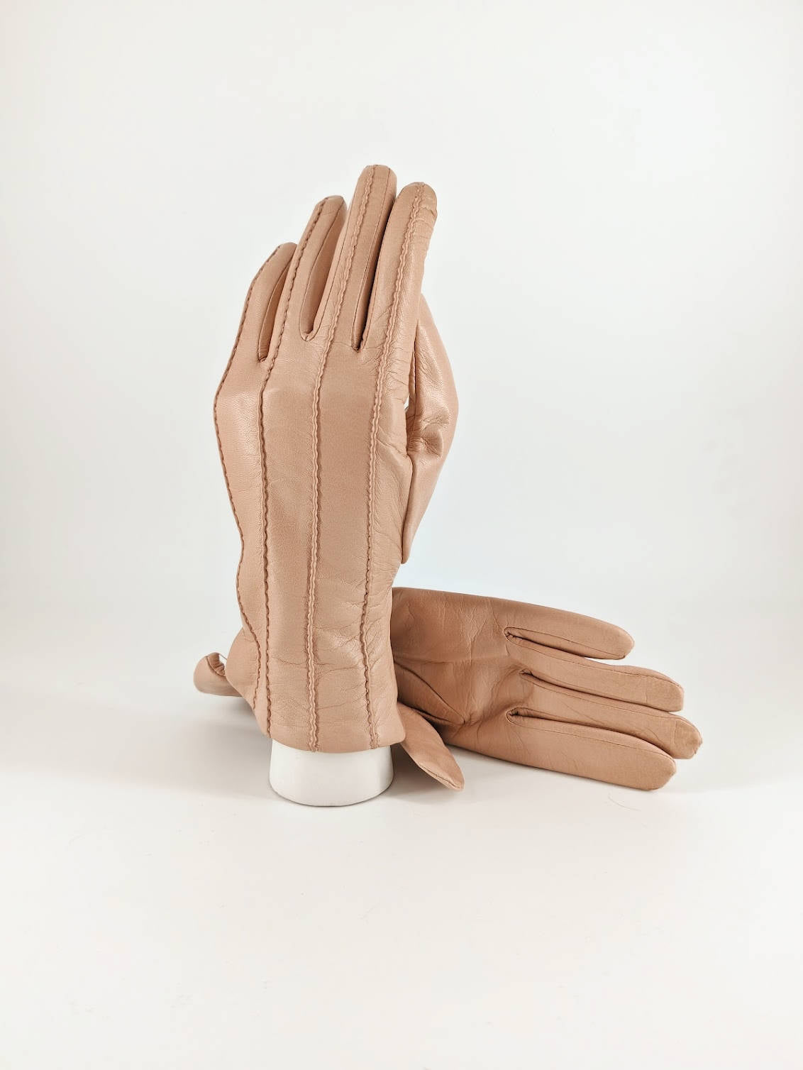 Guanti in pelle lavorati a mano. Con impunture sul dorso.